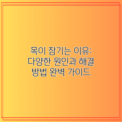 갑자기 목이 잠겨서 말하기가 힘들고, 불편함을 느낀 경험, 누구나 한 번쯤 있으시죠? 목이 잠기는 것은 단순한 불편함을 넘어, 일상생활에 큰 지장을 줄 수 있는 증상이에요. 하지만 목이 잠기는 원인은 생각보다 다양하며, 그 원인을 정확히 파악해야 효과적인 해결 방법을 찾을 수 있답니다. 이 글에서는 목이 잠기는 여러 가지 원인을 자세히 알아보고, 각 원인에 맞는 해결 방법과 예방법까지 꼼꼼하게 살펴볼 거예요.