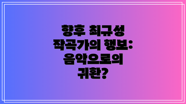 향후 최규성 작곡가의 행보: 음악으로의 귀환?