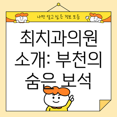 치아 건강, 소중하죠? 건강한 치아는 자신감 있는 미소와 삶의 질 향상에 직결된다는 사실, 모두 아실 거예요. 오늘은 부천에서 믿을 수 있는 치과, 바로 최치과의원에 대해 자세히 알아보고, 임플란트, 치아검진, 예약 등 중요한 정보들을 꼼꼼하게 정리해 드릴게요.